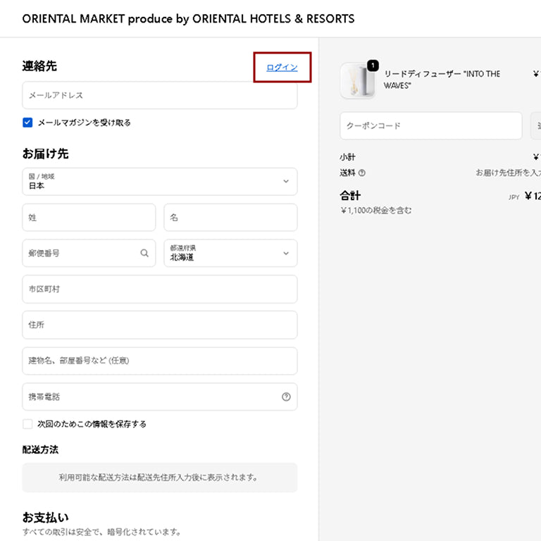(1)すでにオンラインショップ会員登録をされている方は「ログイン」をしていただけると情報入力を省略することが出来ます。