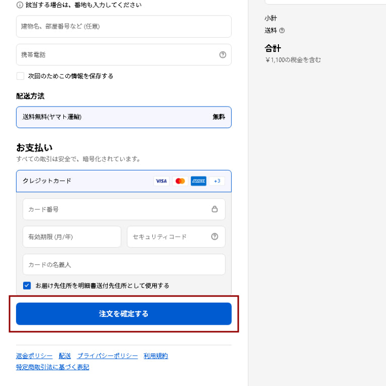 お支払い方法を入力し決済完了
